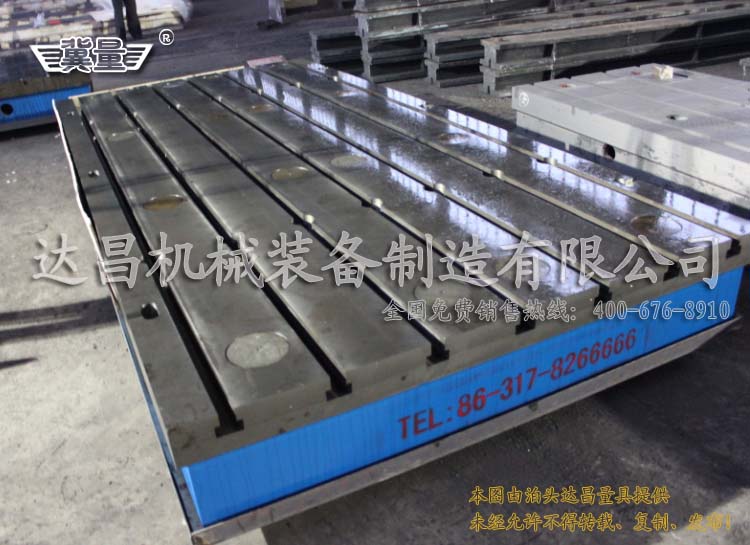 鑄鐵平板工作面的工作面多采用人工刮研工藝處理,精度可分為:1級、2級、3級、精刨四個等級,每個等級的平板適用于不同的使用工況。精刨的鑄鐵平板適用于焊接工作,3級平板適合裝配、焊接,2級平板適合劃線、檢驗、測量,1級平板適用于精密檢測,但由于工藝原因稍大規格的平板達不到1級精度要求。1米左右的鑄鐵平板的工作面可以采用人工研磨工藝,研磨后的平板可以達到1級精度要求。在很多特定的使用環境下客戶需要鑄鐵平板的側面有精度,并且底面需要與工作面平行,這種情況下,就需要采用數控加工的方式。