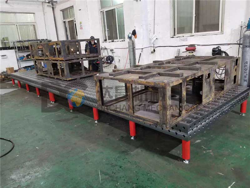 組合夾具是在機床夾具零部件標準化的基礎上發展起來的一種新型的工藝裝備,是由在結構尺寸已規格化、系列化和標準化的通用元件和合件組裝而成的夾具,使用完畢后,又可方便地拆卸成單個元件(合件不拆開),待下次使用.組裝新的夾具。它既類似于“搭積木”可組裝成某一種專門的夾具,也可組裝成通用可調夾具或成組夾具。因此,組合夾具的工作原理組合夾具把原來夾具的設計、制造、使用、報廢的單向過程變為設計、組裝、使用、拆散、再組裝的循環過程。現在我們在三維焊接平臺上面使用的工裝夾具,就是組合夾具中的一種,它的出現,給我們的焊接工作帶來許多便利。