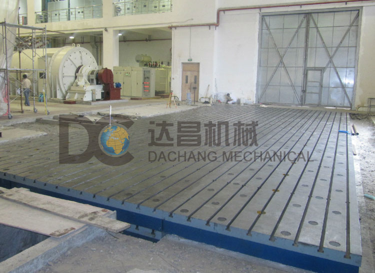 鑄鐵風(fēng)電測試臺制成筋板式和箱體式,工作面有長方形、正方形或圓形,材料HT200-300,QT400-600,ZG15-45。工作面采用刮研工藝,工作面上可加工V形、T形、U形槽、燕尾槽、圓孔、長孔等。平板是用于工件檢測或劃線的平面基準(zhǔn)量具。風(fēng)電試驗臺安裝就調(diào)至水平板、負(fù)荷均勻分布于各支點上。環(huán)境溫度(20±5)℃。使用時應(yīng)避免振動。